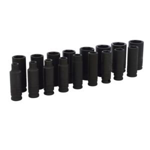 1. Juego de dados largos de impacto cuadro de 3/8", 6 puntas, métricos, 17 piezas Urrea