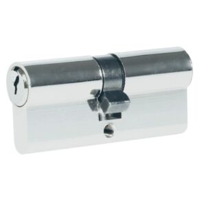 2. Cilindro europeo 70 mm función doble, níquel satinado, llave de puntos, en caja Lock