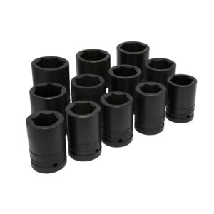 3. Juego de dados largos de impacto cuadro de 1", 6 puntas, en pulgadas, 12 piezas Urrea