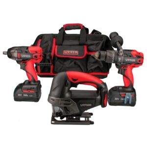 1. Juego de rotomartillo, pistola de impacto y sierra a batería Li-ion 20 V, 4 pz en maleta Urrea
