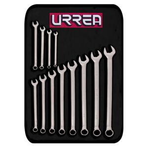 1. Juego de llaves combinadas pulido espejo extra largas métricas, 12 puntas, 12 piezas Urrea